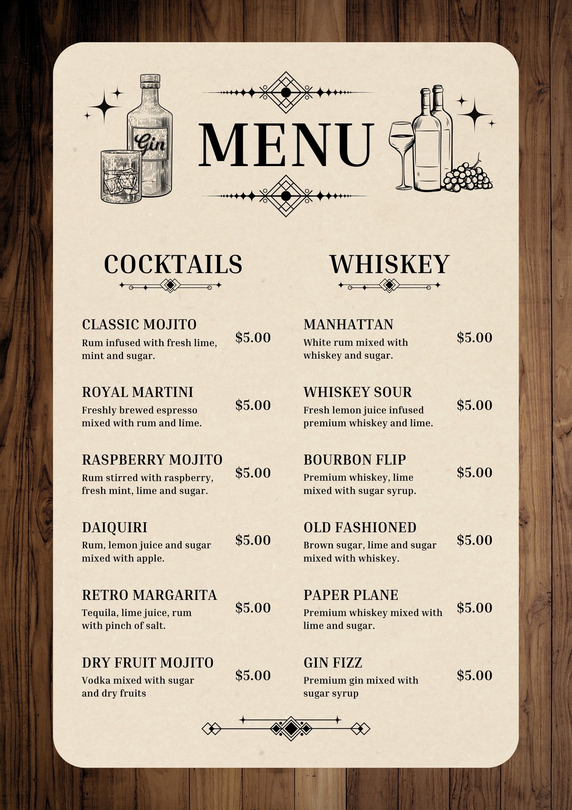 Free Printable Bar Menu Templates