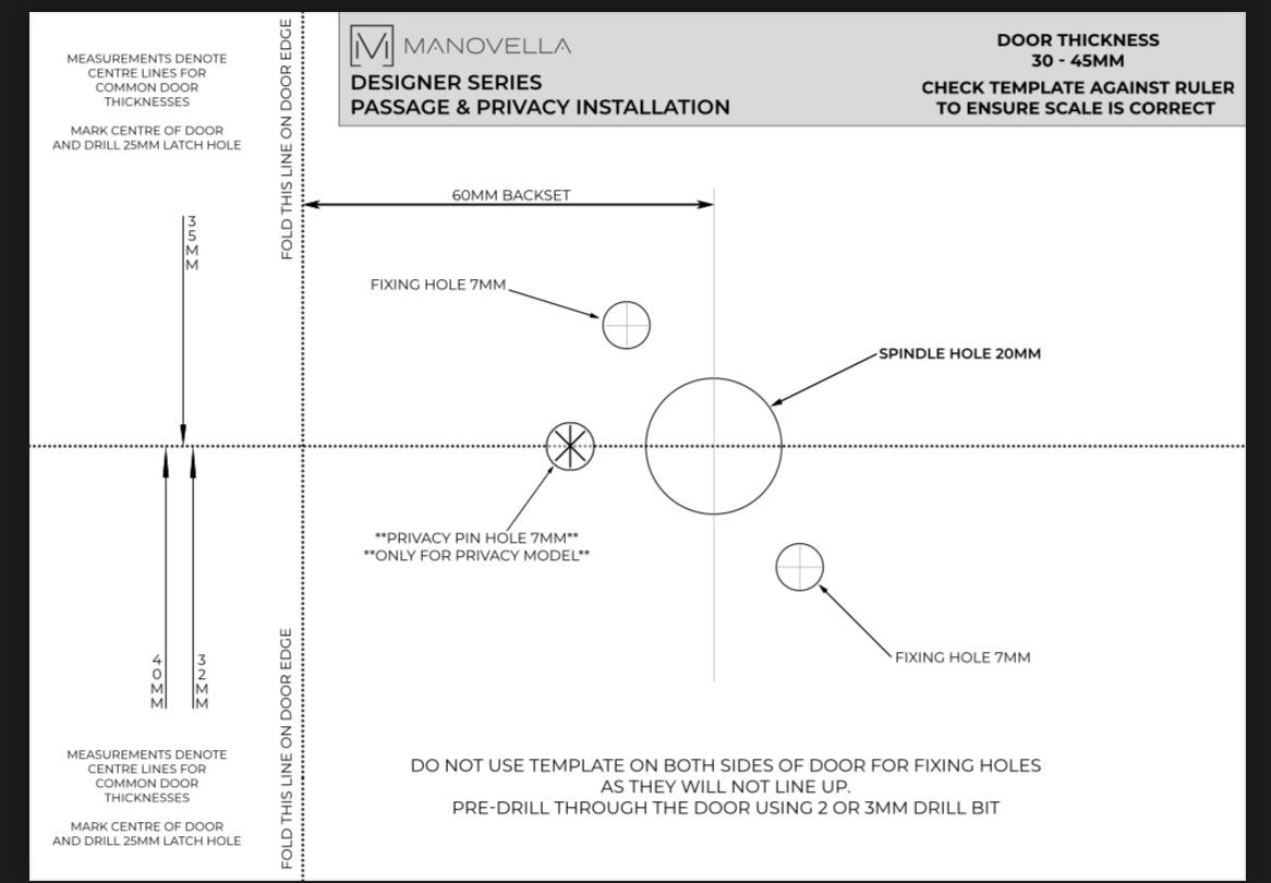 To use the template, print it out and place it on your door. Mark the drill points accurately, which will guide you in creating holes for the knob and latch. This step is crucial for a clean installation.