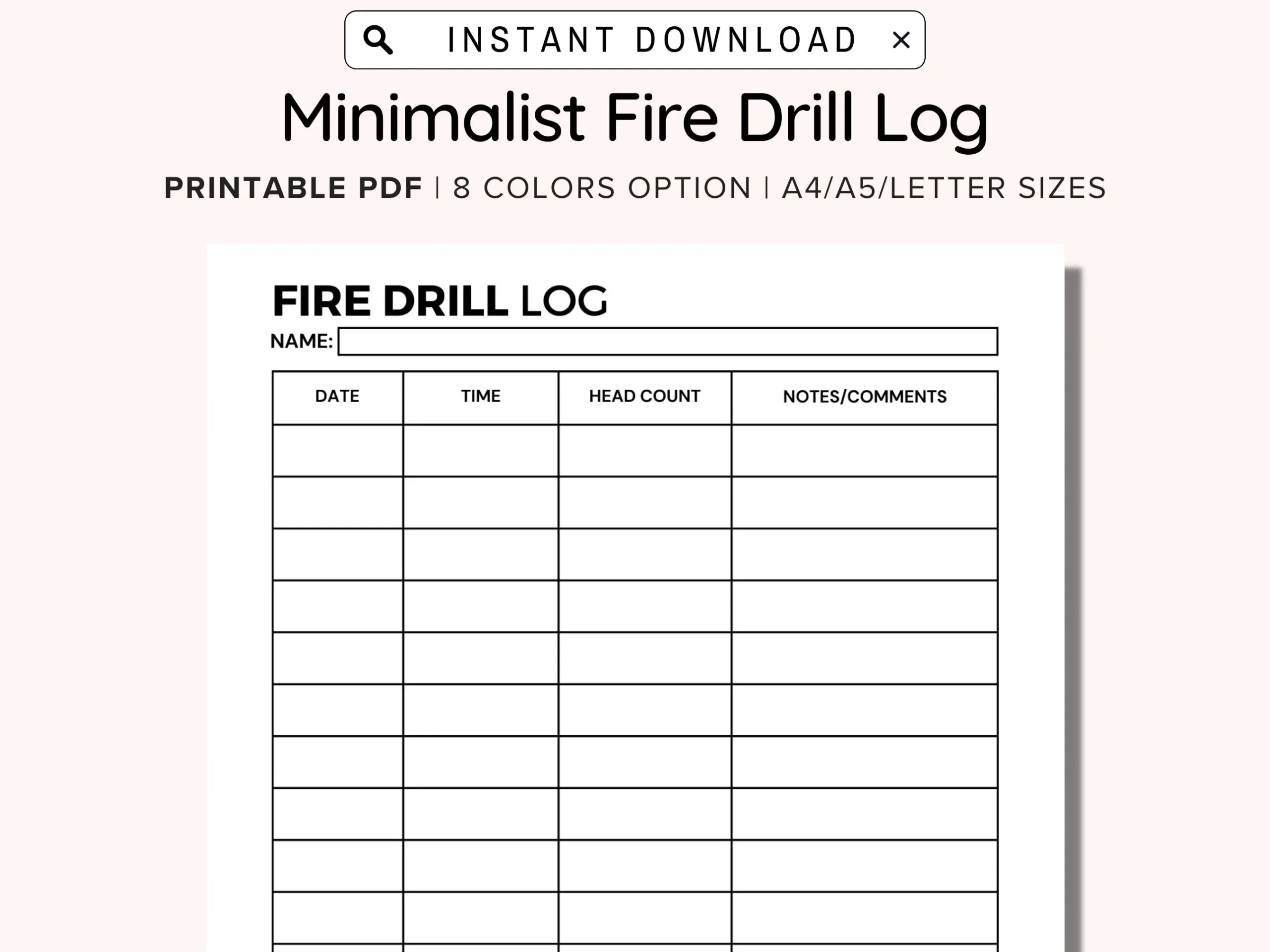 Fire Drill Log 8 5 X 11 Instant Download Printable Etsy