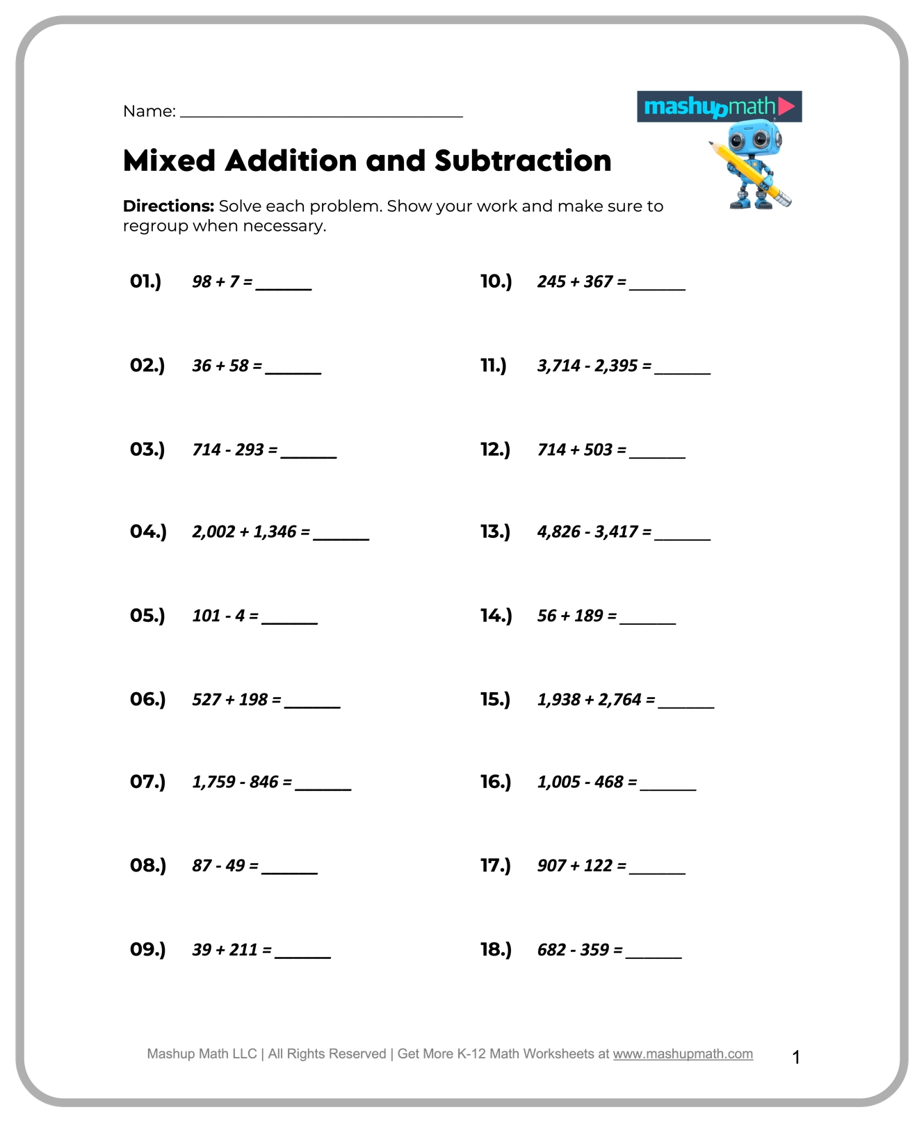 Our printable math worksheets are designed to be both educational and entertaining. From addition and subtraction to multiplication and division, we cover a wide range of topics to keep your child engaged and excited about learning.
